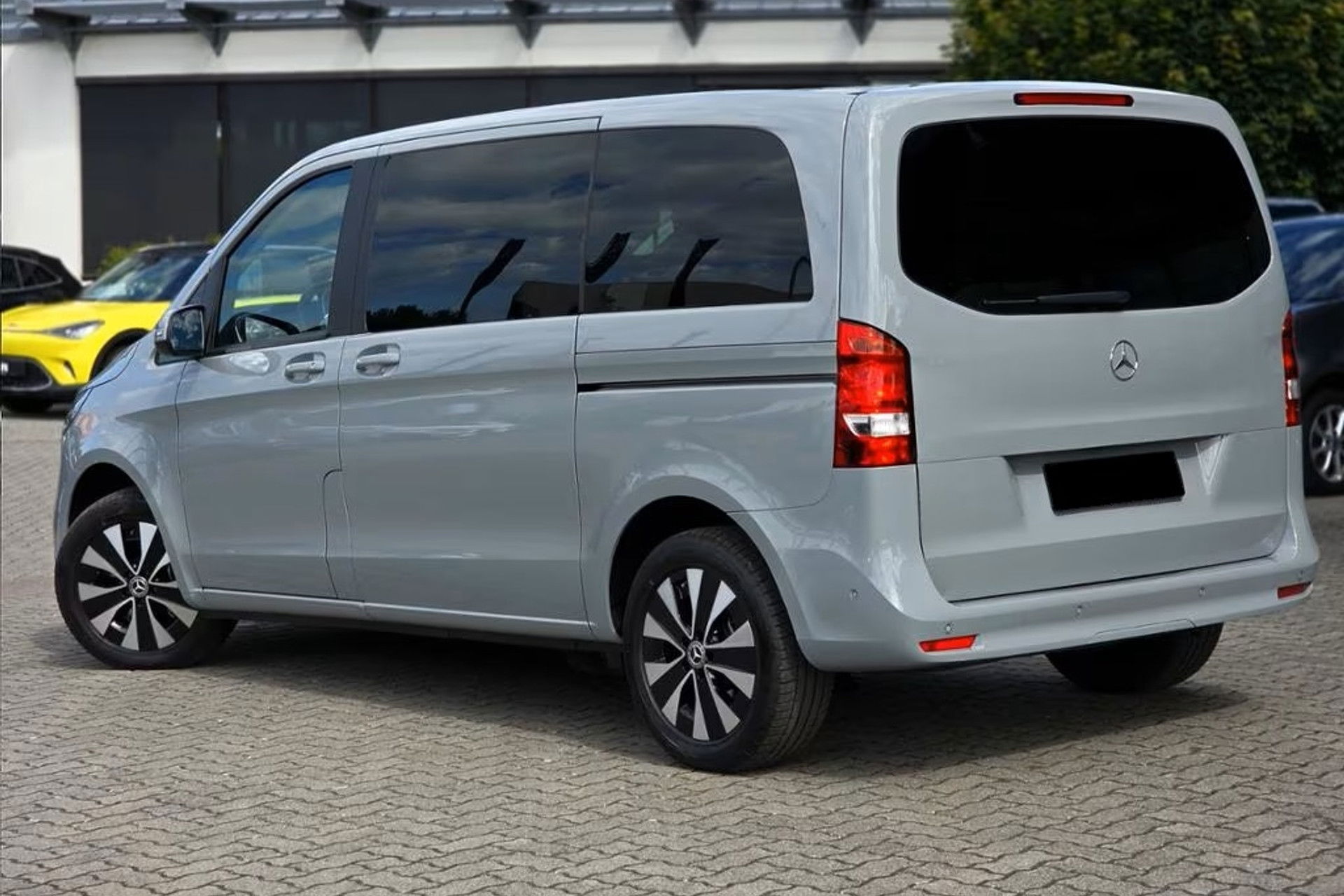 De prijs voor deze Grijs kenteken auto is 62.500 inclusief BPM, maar exclusief BTW met alleen 2 voorstoelen. Levering met Nederlands GRIJS kenteken en gebaseerd op een 2 persoons uitvoering. Dus alleen met de twee voorstoelen en verder een lege beklede laadruimte met ruiten rondom en zonder tussenschot. Dubbele cabine is voor de korte V-Klasse L1 niet mogelijk.